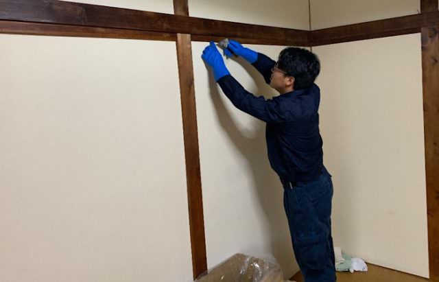 匂いの元の床を撤去しても壁紙にも匂いがしっかり染みてしまっているのでお部屋の全てのクロスを剥がしました。